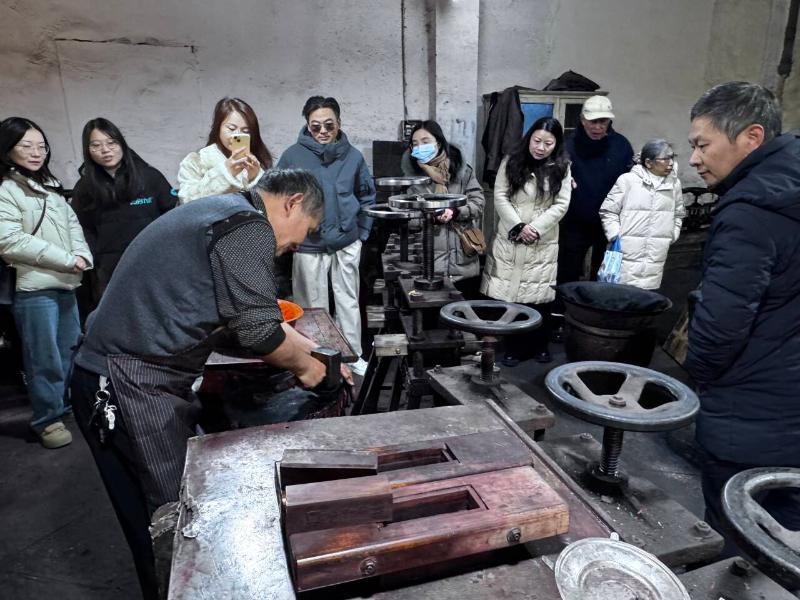 活动首先由区“同心圆梦”宣讲团成员、民革屯溪区总支主委邓咏围绕全会提出的高质量发展主题、繁荣发展社会主义文化等内容,结合屯溪实际解读精神内涵,凝聚履职共识。随后,党员们走进富有历史底蕴的党员企业——胡开文墨厂,沉浸式感受非遗文化的魅力。作为省级非物质文化遗产徽墨制作技艺传承人的民革党员程国胜,详细介绍了胡开文墨厂自清代创办以来的百年传承史,以及从炼烟、和料到制墨、晾墨、描金等制作过程,让党员们直观体会到传统技艺的匠心坚守与文化自信。