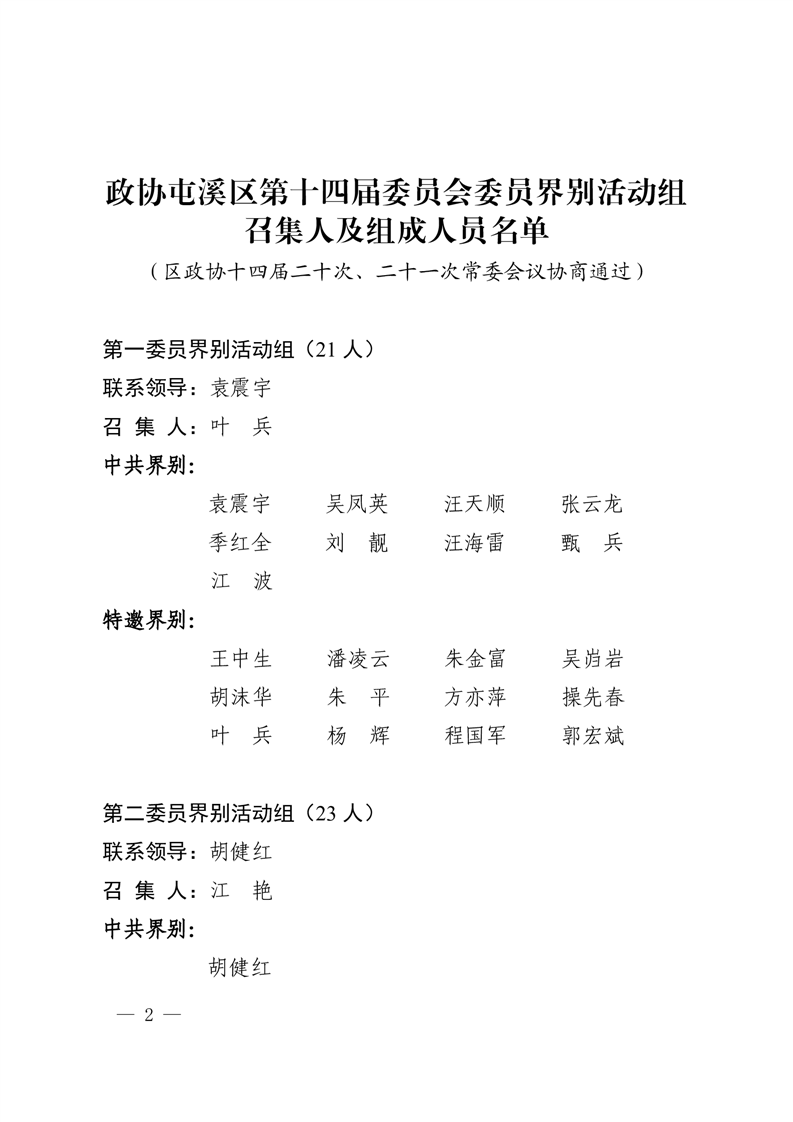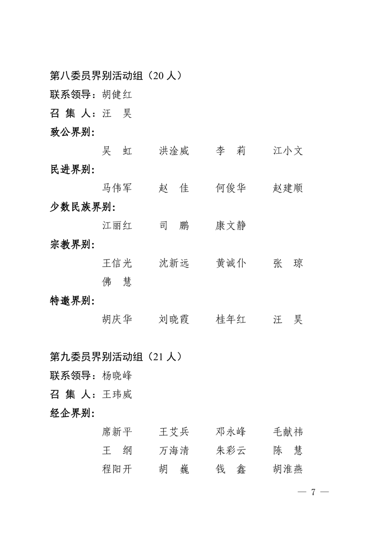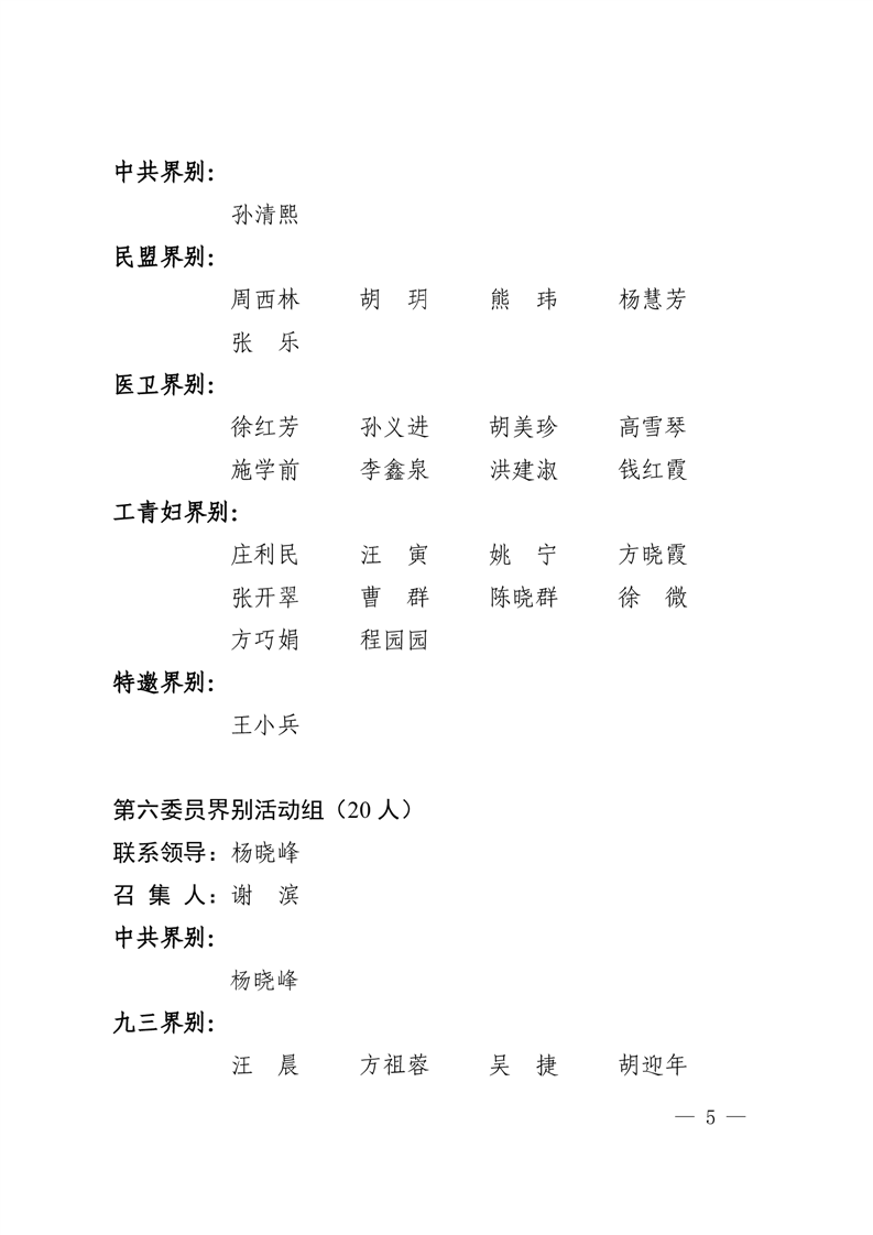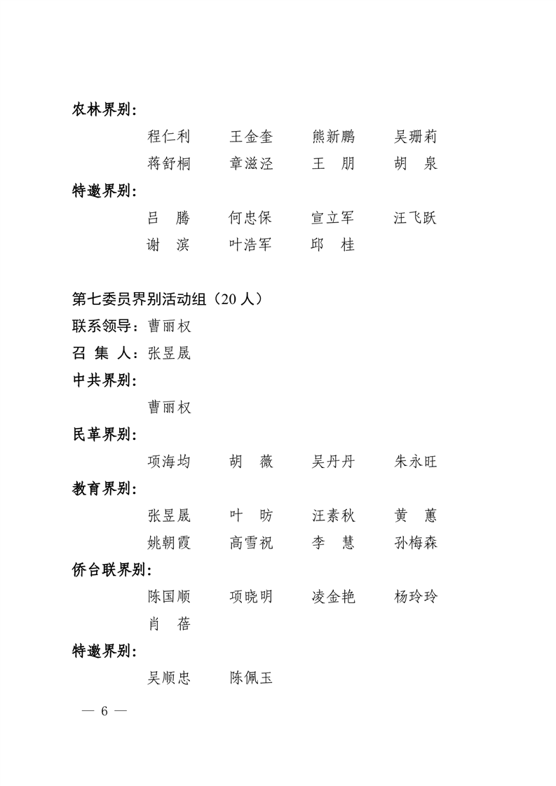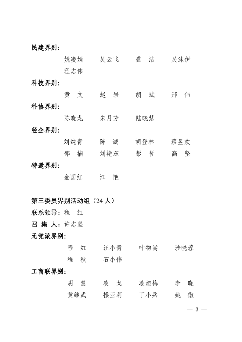 区政协十四届委员会委员界别活动组分组名单